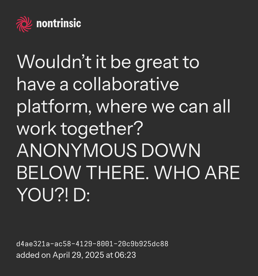 bagikanWouldn’t it be great to have a collaborative platform, where we can all work together? ANONYMOUS DOWN BELOW THERE. WHO ARE YOU?! D: