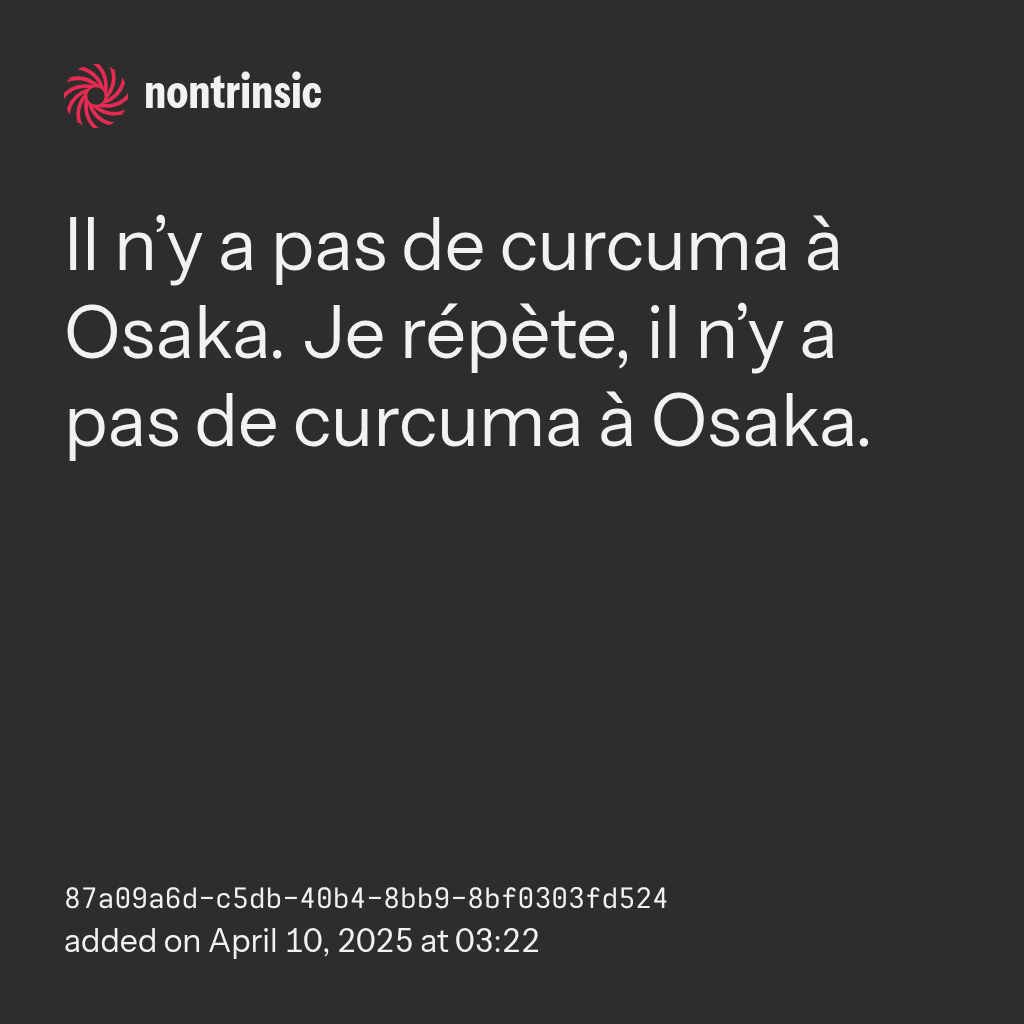 bagikanIl n’y a pas de curcuma à Osaka. Je répète, il n’y a pas de curcuma à Osaka.