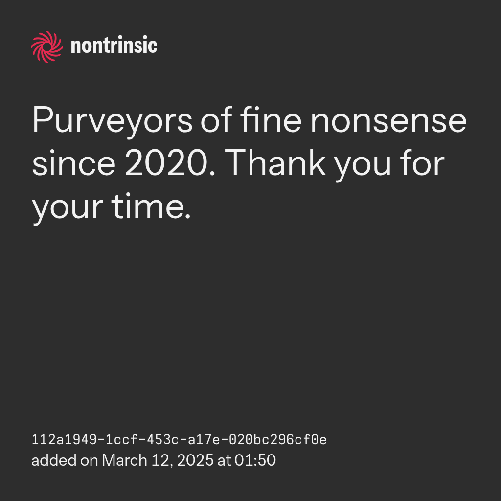bagikanPurveyors of fine nonsense since 2020. Thank you for your time.