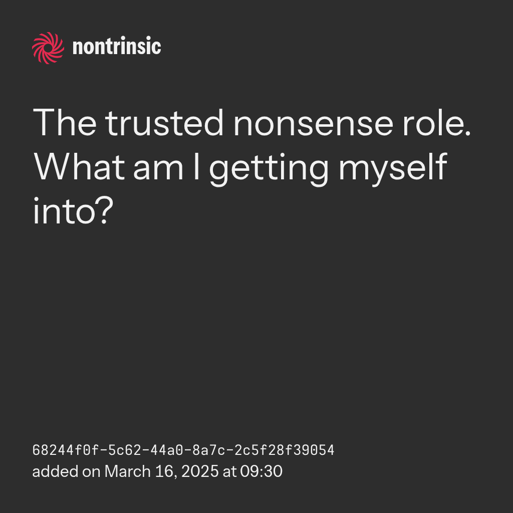 bagikanThe trusted nonsense role. What am I getting myself into?