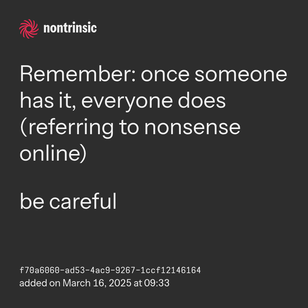 bagikanRemember: once someone has it, everyone does (referring to nonsense online)