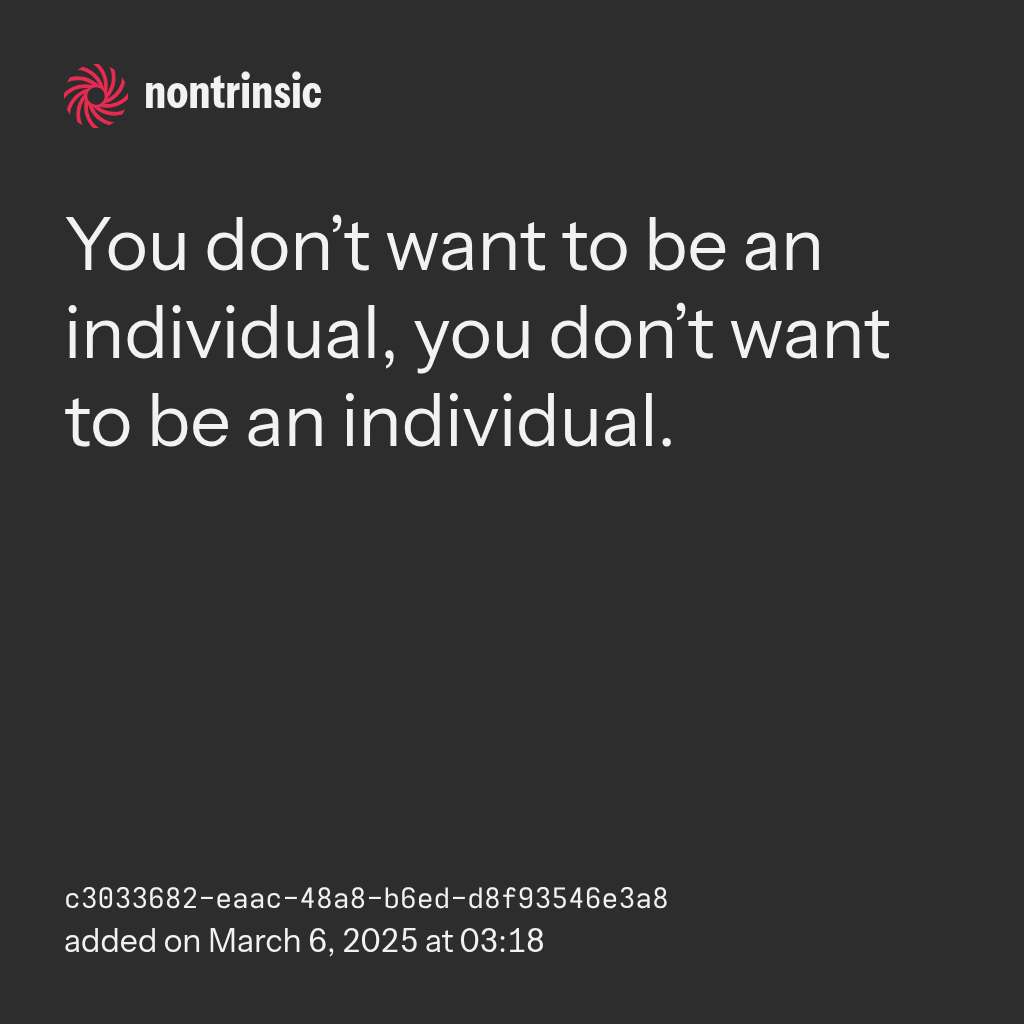 bagikanYou don’t want to be an individual, you don’t want to be an individual.