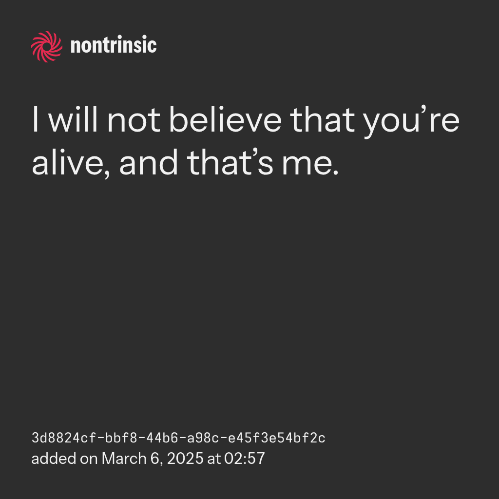bagikanI will not believe that you’re alive, and that’s me.