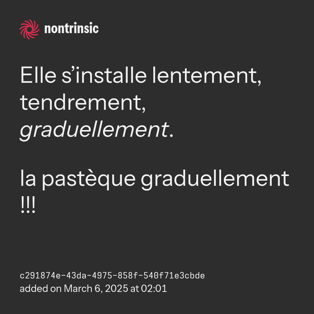 bagikanElle s’installe lentement, tendrement, graduellement.