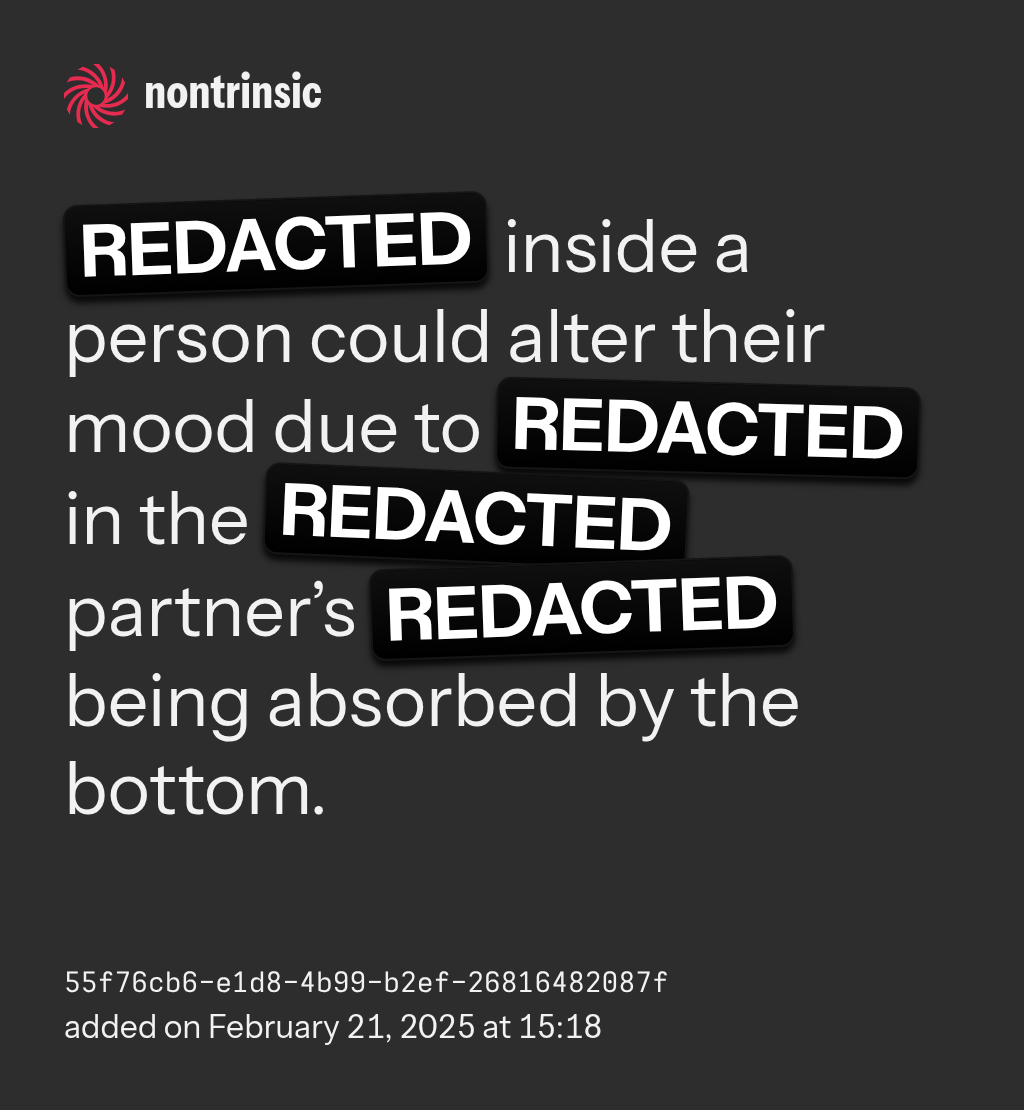 bagikanREDACTED inside a person could alter their mood due to REDACTED in the REDACTED partner’s REDACTED being absorbed by the bottom.