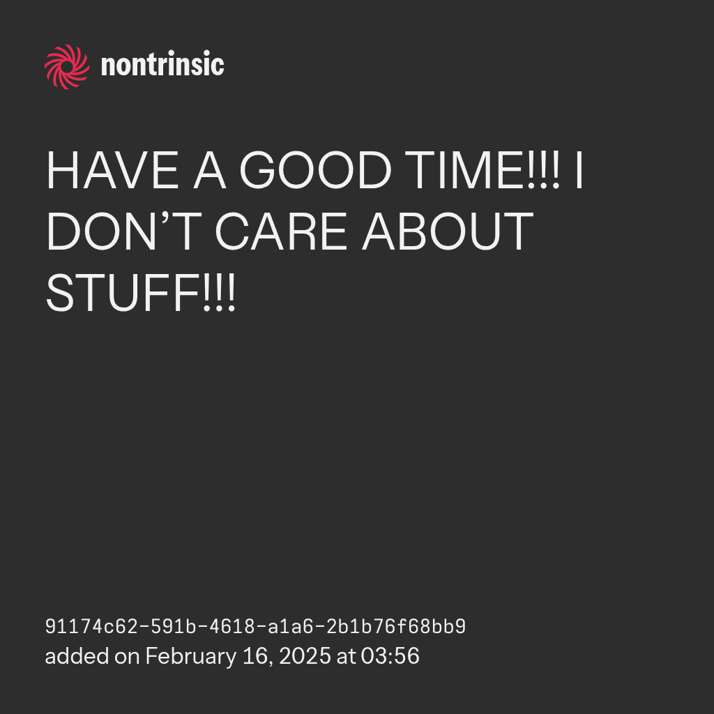 bagikanHAVE A GOOD TIME!!! I DON’T CARE ABOUT STUFF!!!