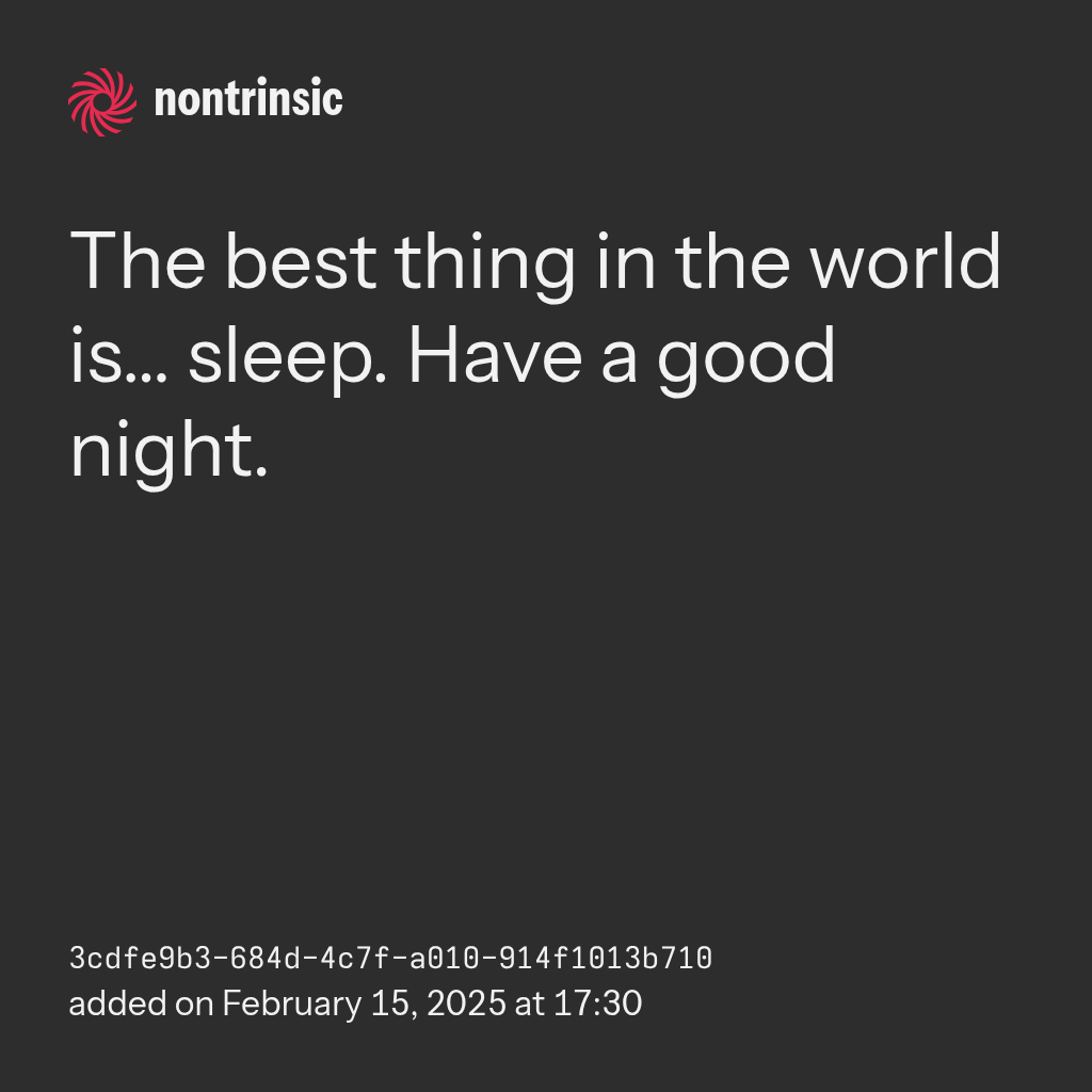 bagikanThe best thing in the world is… sleep. Have a good night.