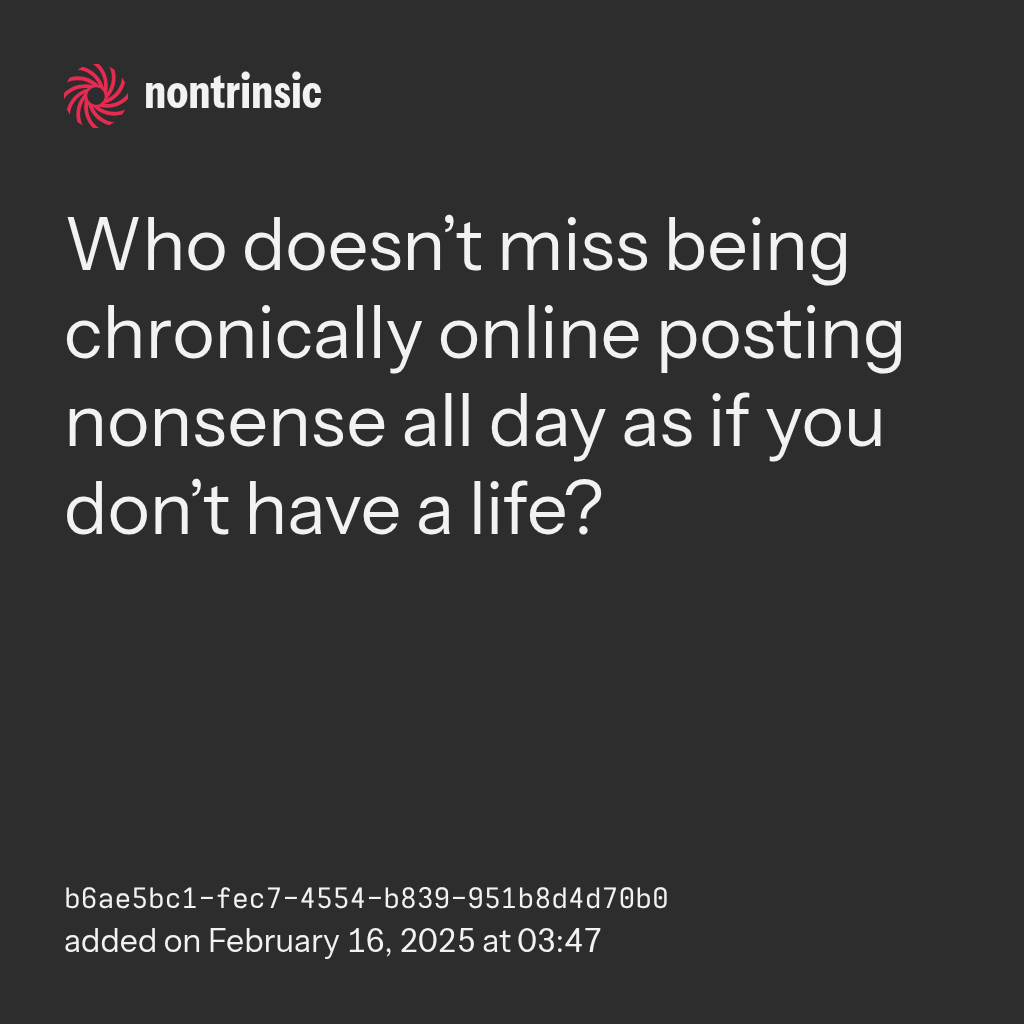 Who doesn’t miss being chronically online posting nonsense all day as if you don’t have a life?
