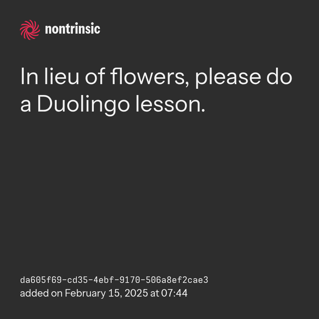 bagikanIn lieu of flowers, please do a Duolingo lesson.