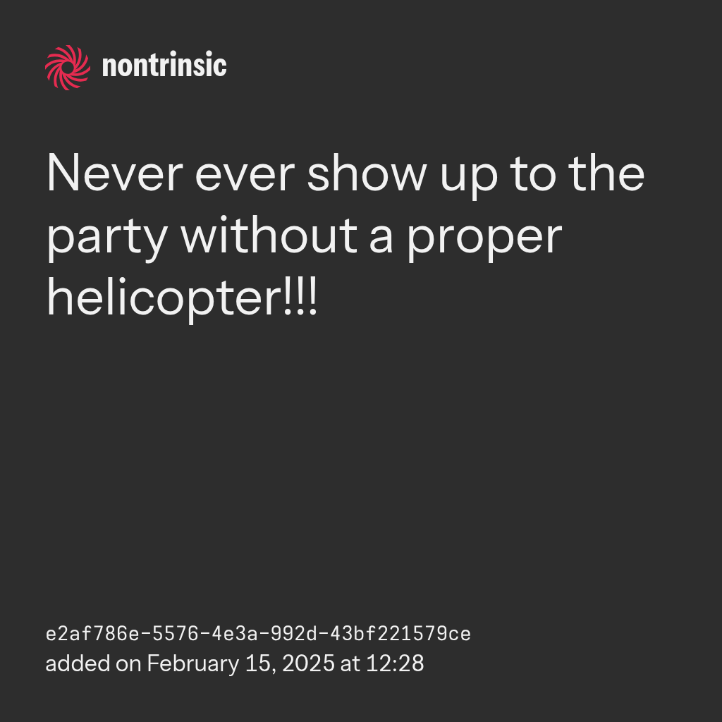 bagikanNever ever show up to the party without a proper helicopter!!!