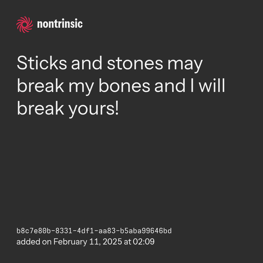 bagikanSticks and stones may break my bones and I will break yours!