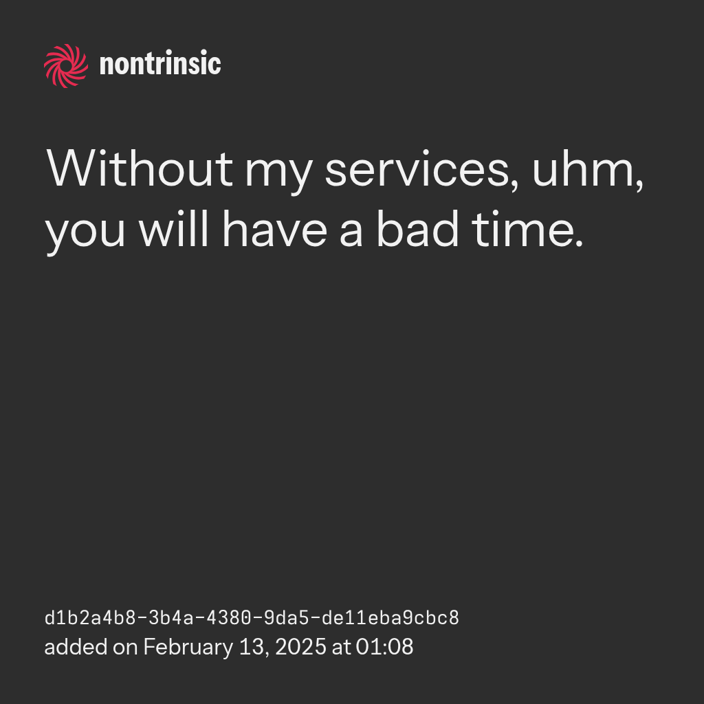 bagikanWithout my services, uhm, you will have a bad time.