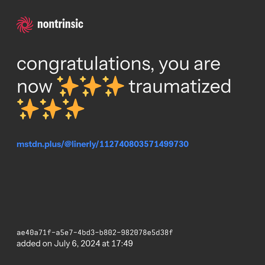 bagikancongratulations, you are now ✨✨✨ traumatized ✨✨✨