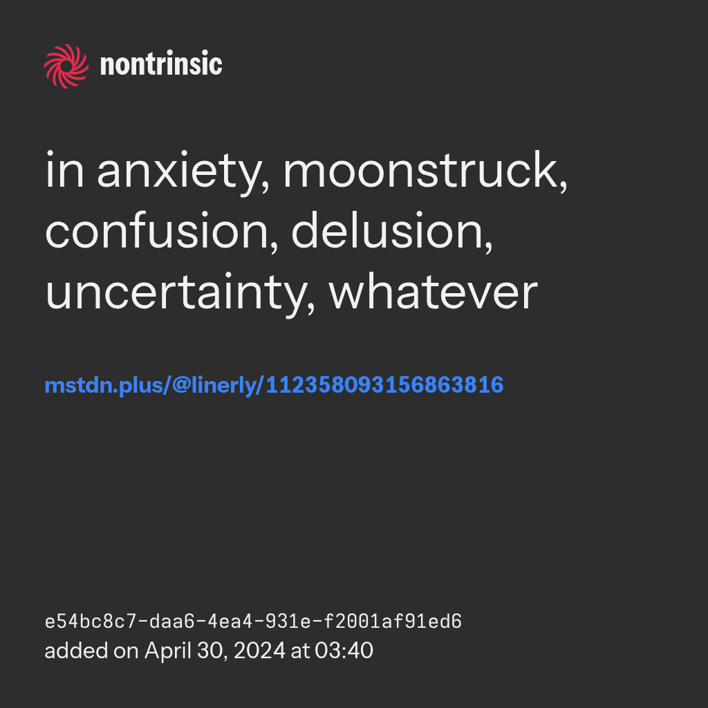 bagikanin anxiety, moonstruck, confusion, delusion, uncertainty, whatever