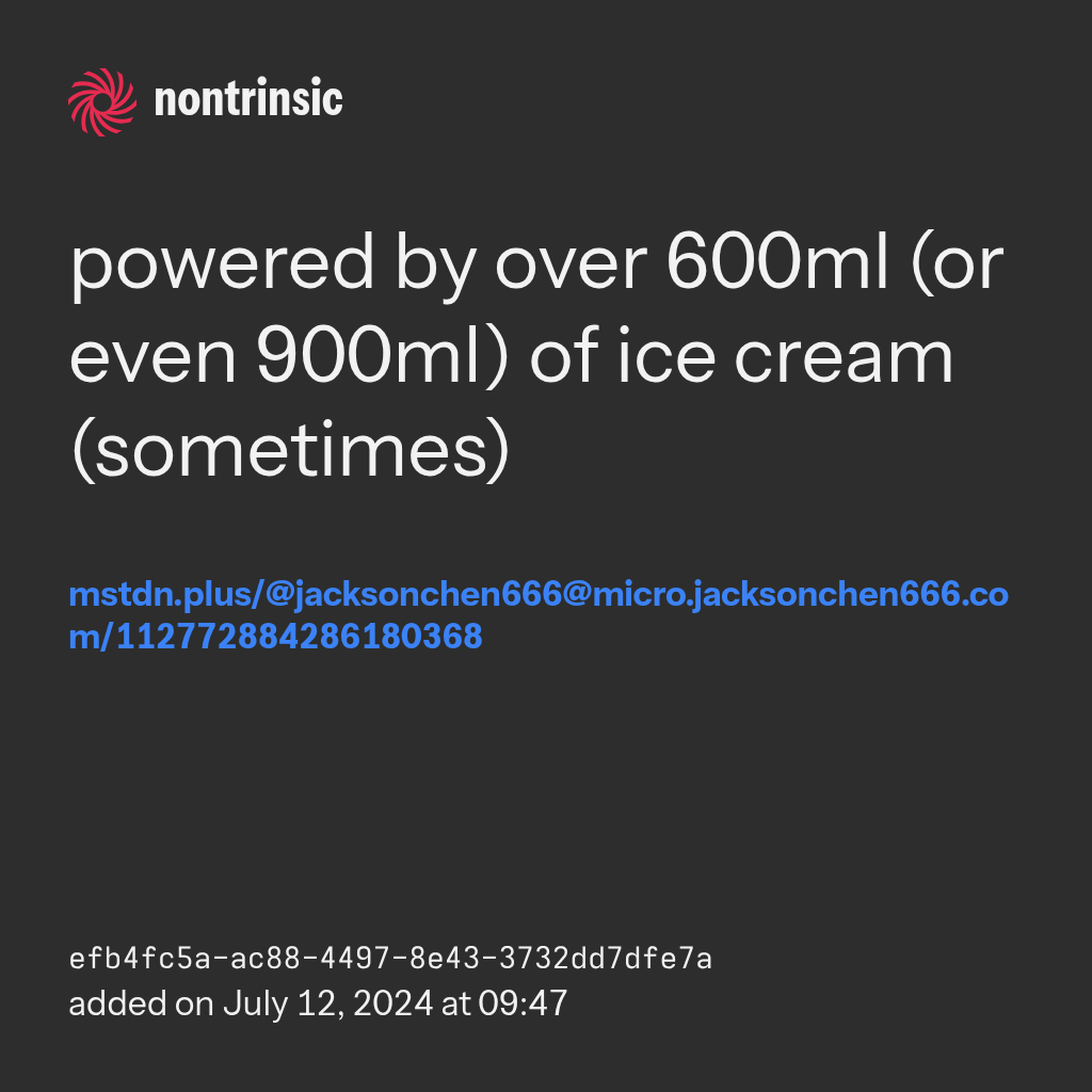 bagikanpowered by over 600ml (or even 900ml) of ice cream (sometimes)