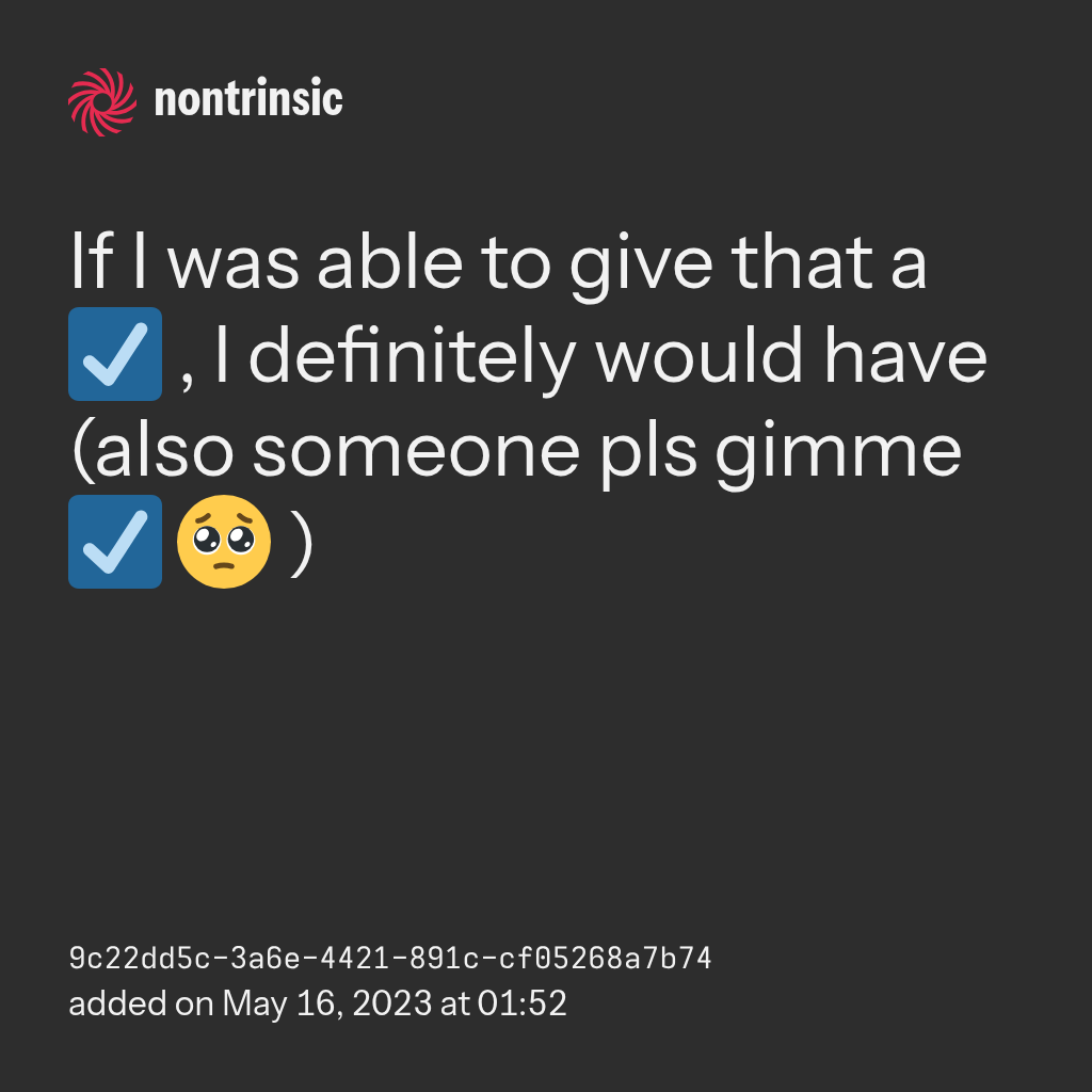 bagikanIf I was able to give that a ☑️ , I definitely would have (also someone pls gimme ☑️ 🥺 )