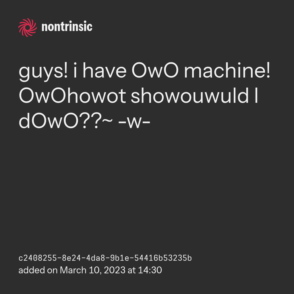 bagikanguys! i have OwO machine! OwOhowot showouwuld I dOwO??~ -w-