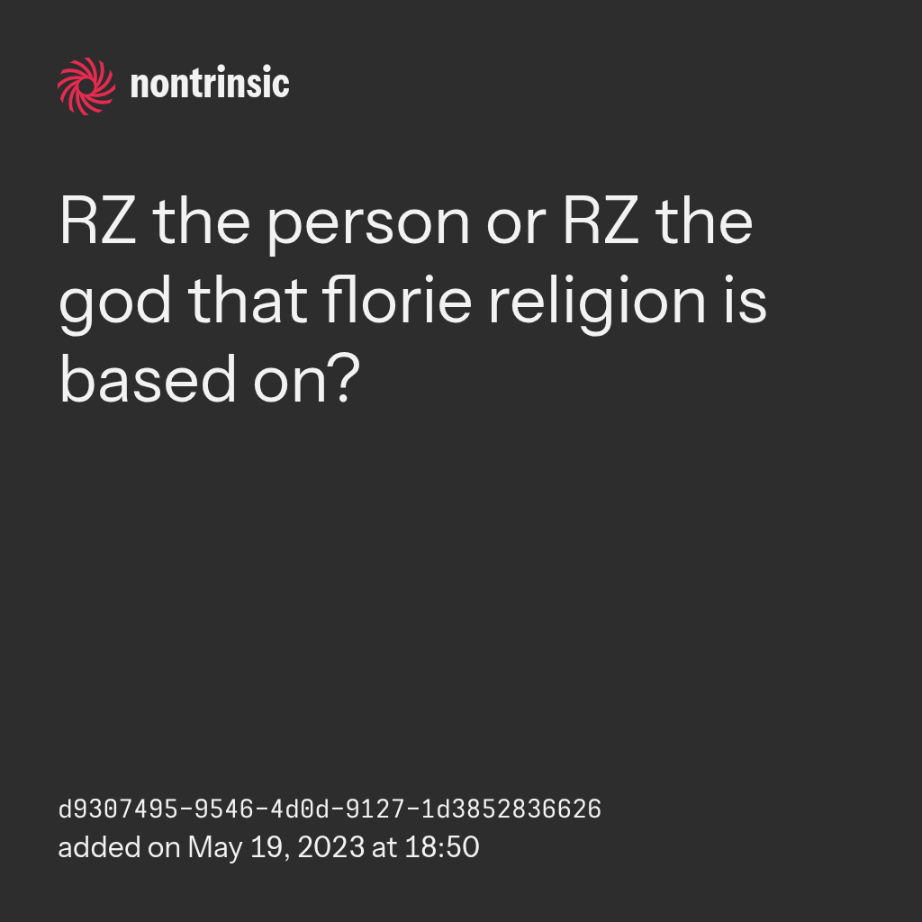 bagikanRZ the person or RZ the god that florie religion is based on?