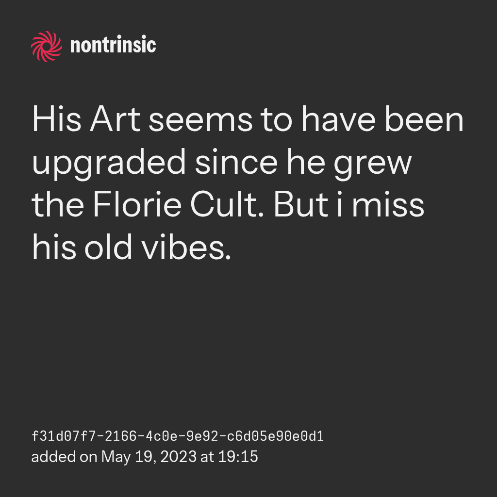 bagikanHis Art seems to have been upgraded since he grew the Florie Cult. But i miss his old vibes.