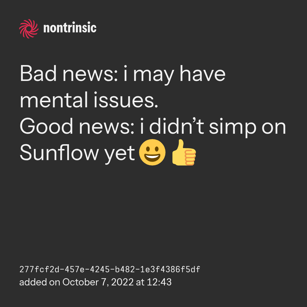 Good news: i didn’t simp on Sunflow yet 😀 👍