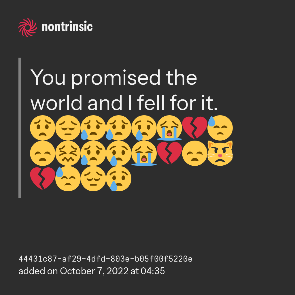bagikanYou promised the world and I fell for it. 😟😔😥😥😢😭💔😓😞😖😥😢😭💔😞😾💔😓😔😢