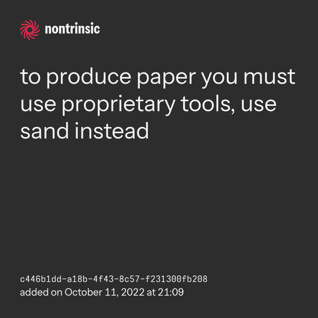 bagikanto produce paper you must use proprietary tools, use sand instead
