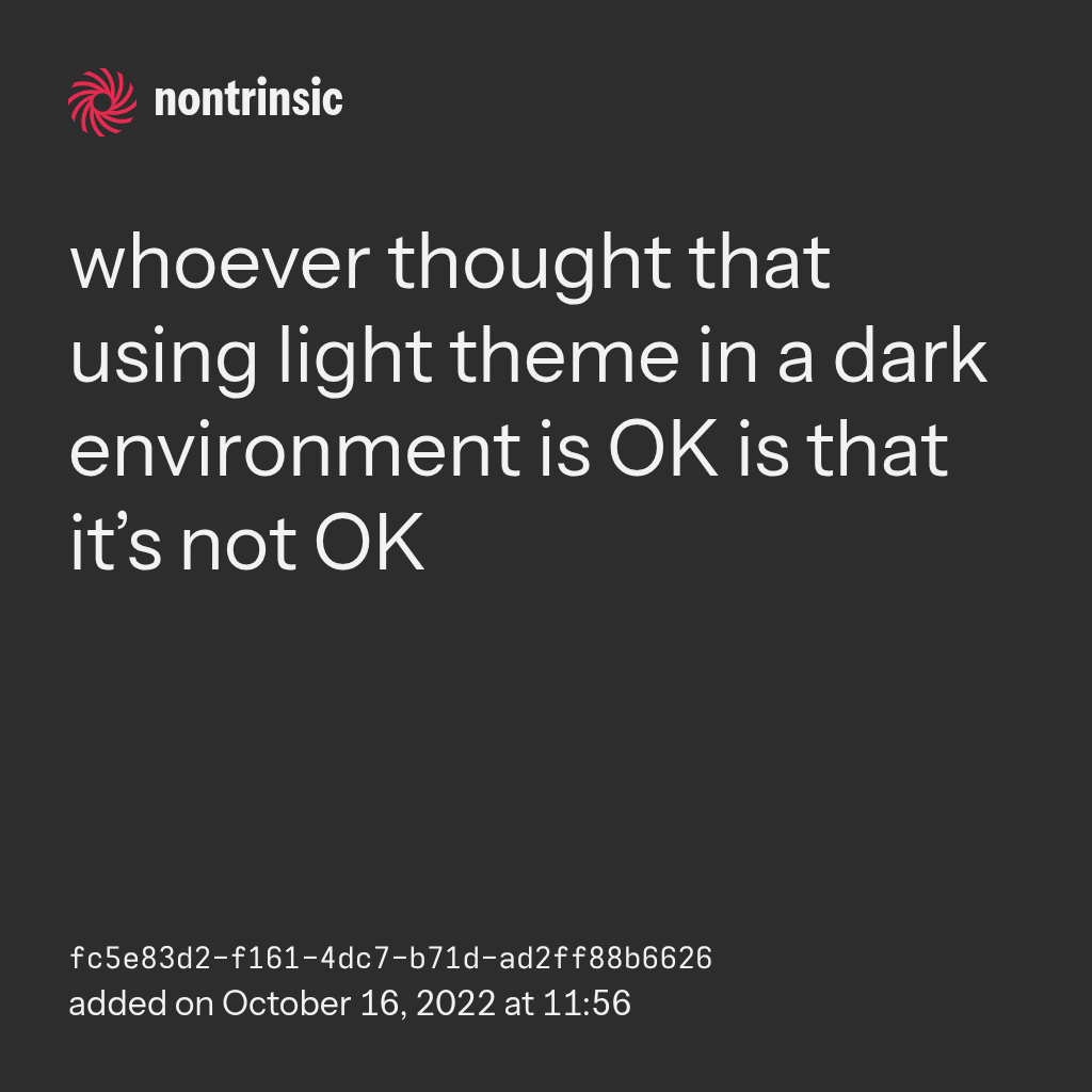whoever thought that using light theme in a dark environment is OK is that it’s not OK