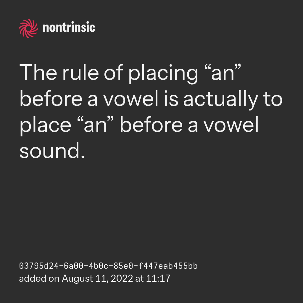 bagikanThe rule of placing “an” before a vowel is actually to place “an” before a vowel sound.