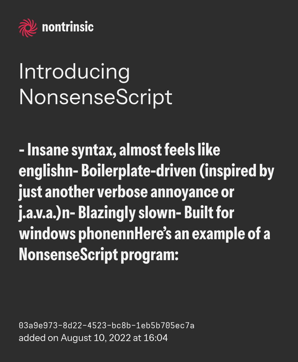 bagikanIntroducing NonsenseScript