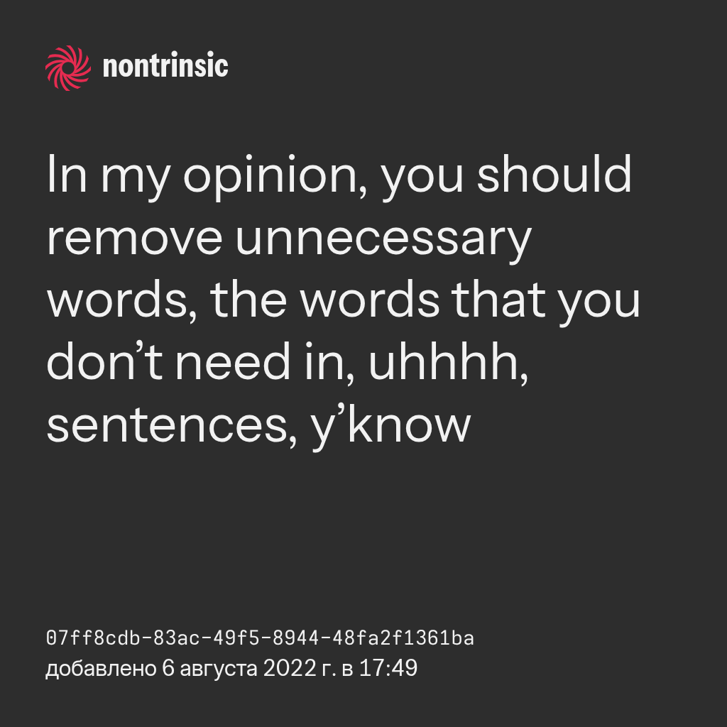 bagikanIn my opinion, you should remove unnecessary words, the words that you don’t need in, uhhhh, sentences, y’know