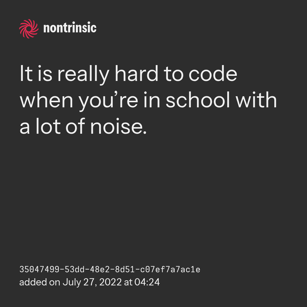 bagikanIt is really hard to code when you’re in school with a lot of noise.