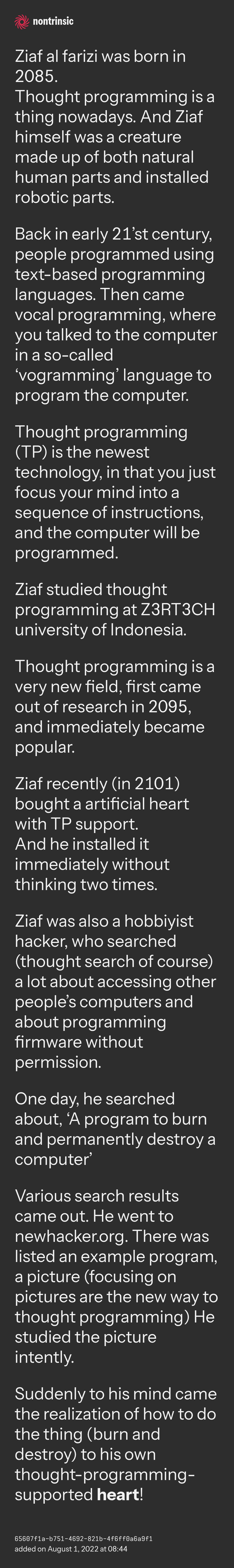And he slept. While he was sleeping, without knowing what he was doing, he dreamt about that dangerous thought program.