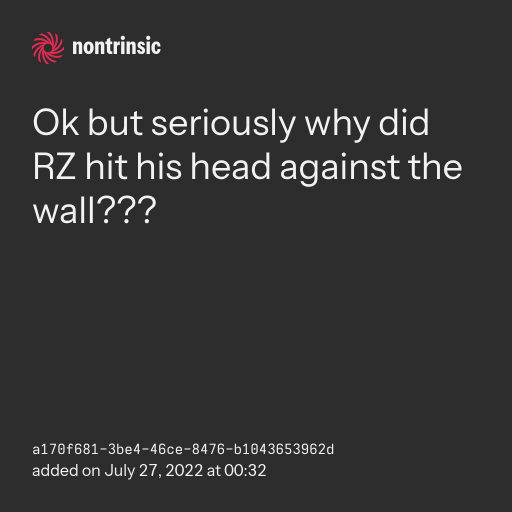 bagikanOk but seriously why did RZ hit his head against the wall???