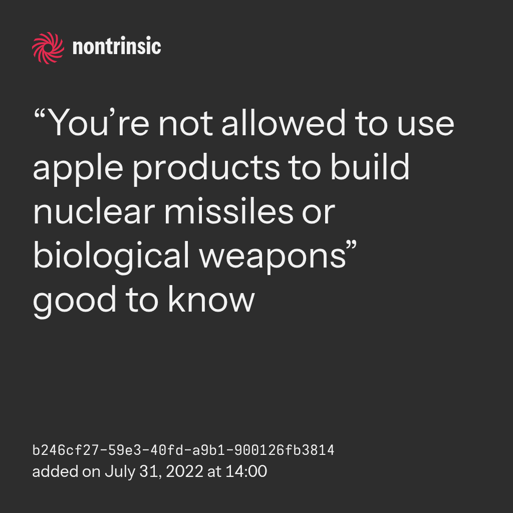 bagikan“You’re not allowed to use apple products to build nuclear missiles or biological weapons”