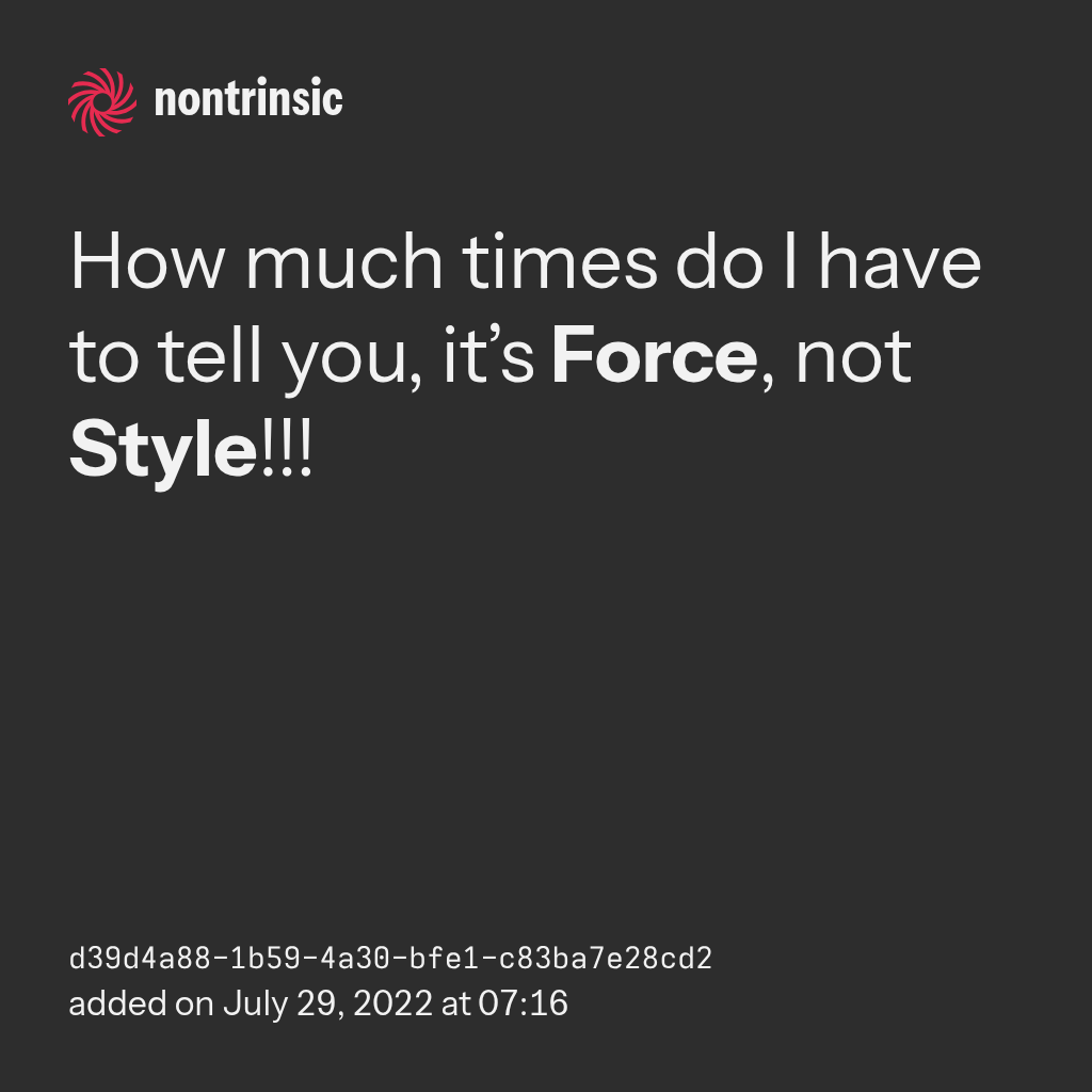 bagikanHow much times do I have to tell you, it’s Force, not Style!!!