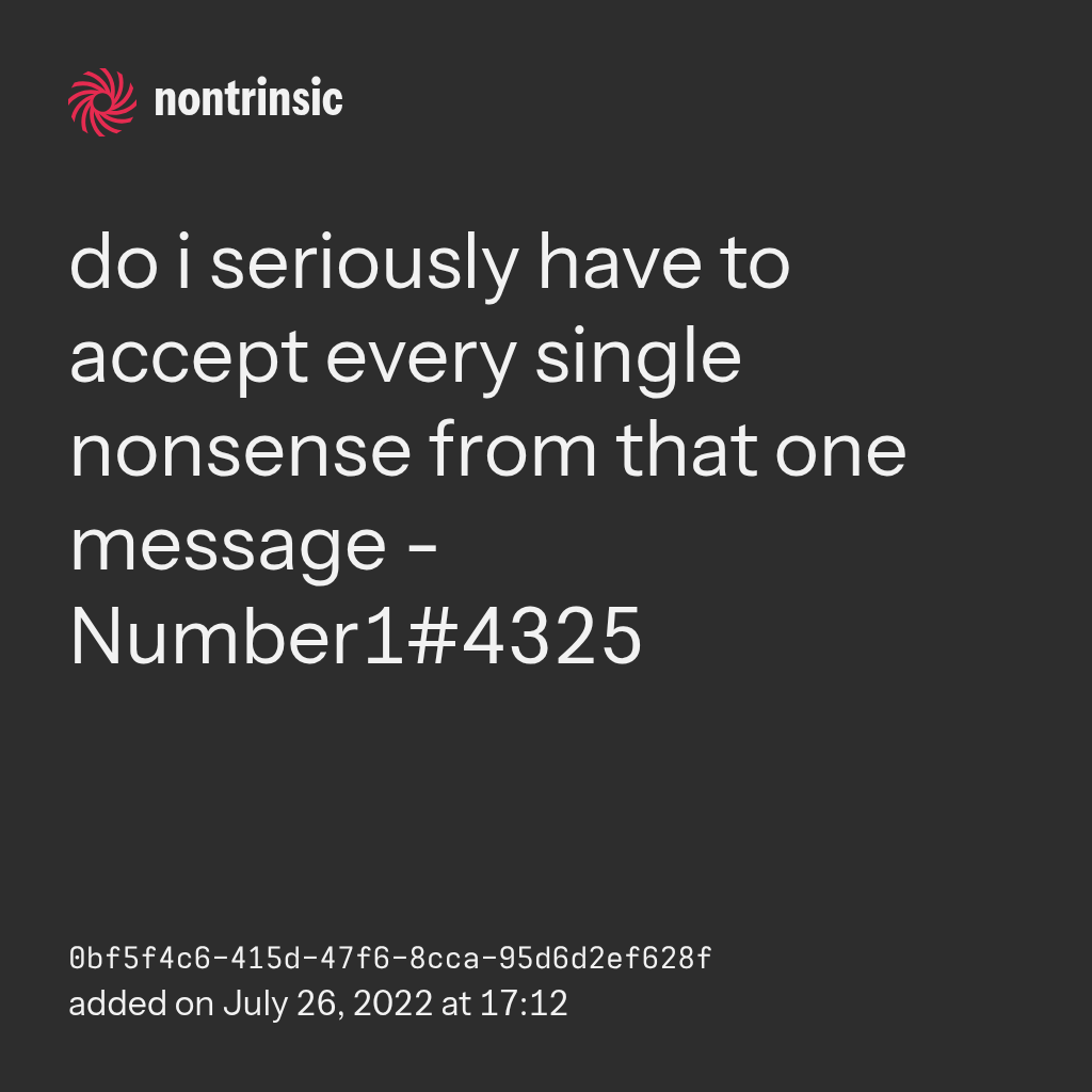 bagikando i seriously have to accept every single nonsense from that one message - Number1#4325