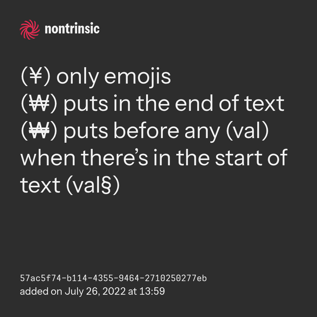 (₩) puts before any (val) when there’s in the start of text (val§)
