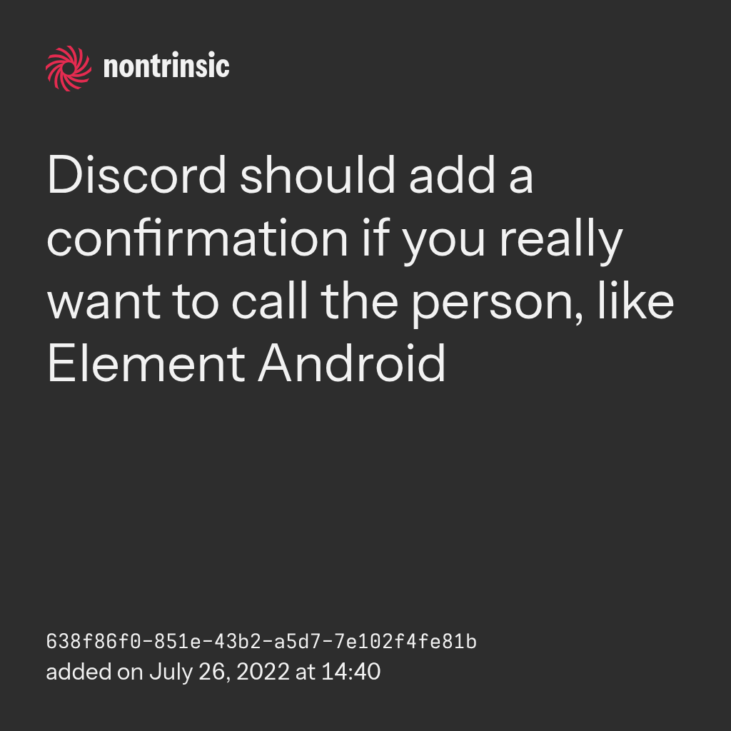 bagikanDiscord should add a confirmation if you really want to call the person, like Element Android