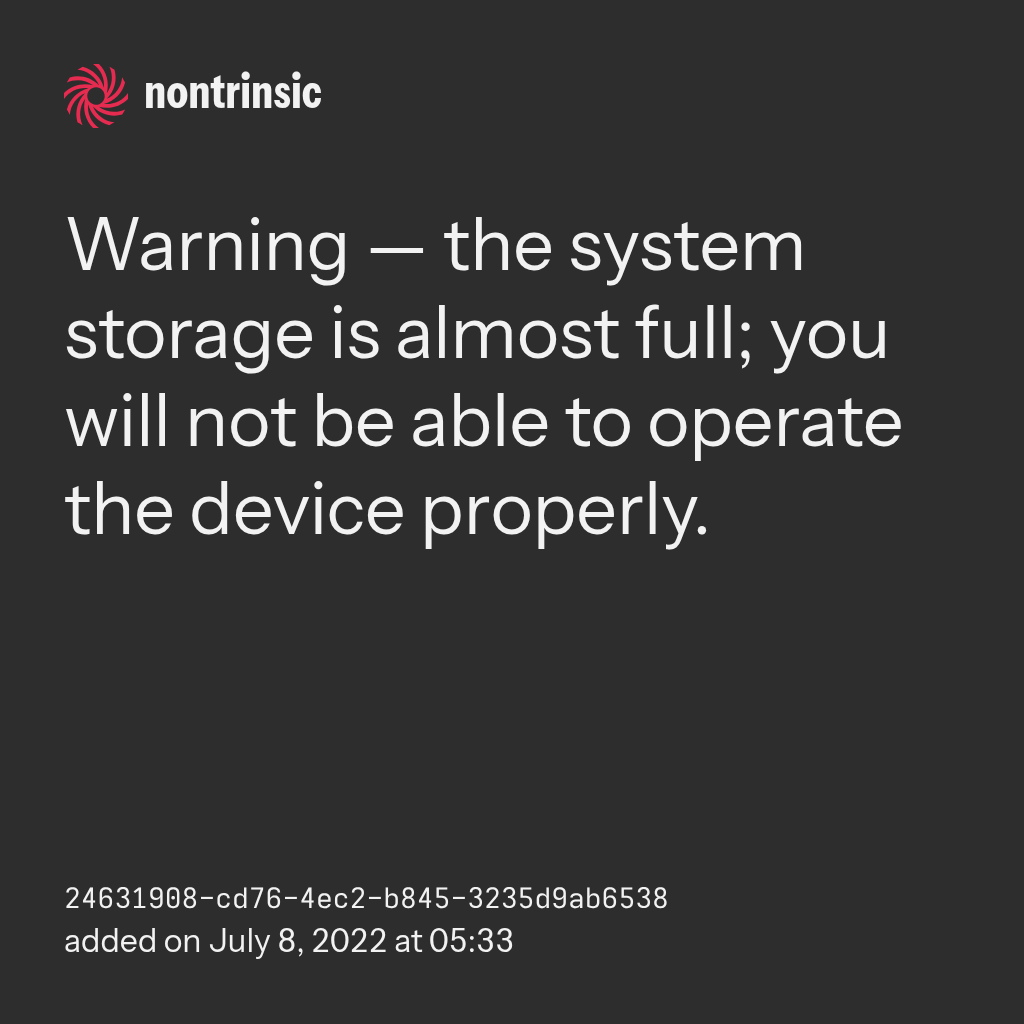 bagikanWarning โ the system storage is almost full; you will not be able to operate the device properly.