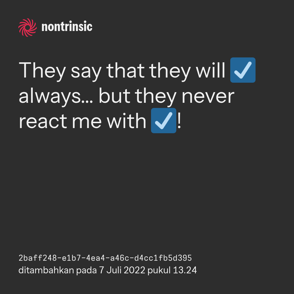 bagikanThey say that they will โ๏ธ alwaysโฆ but they never react me with โ๏ธ!