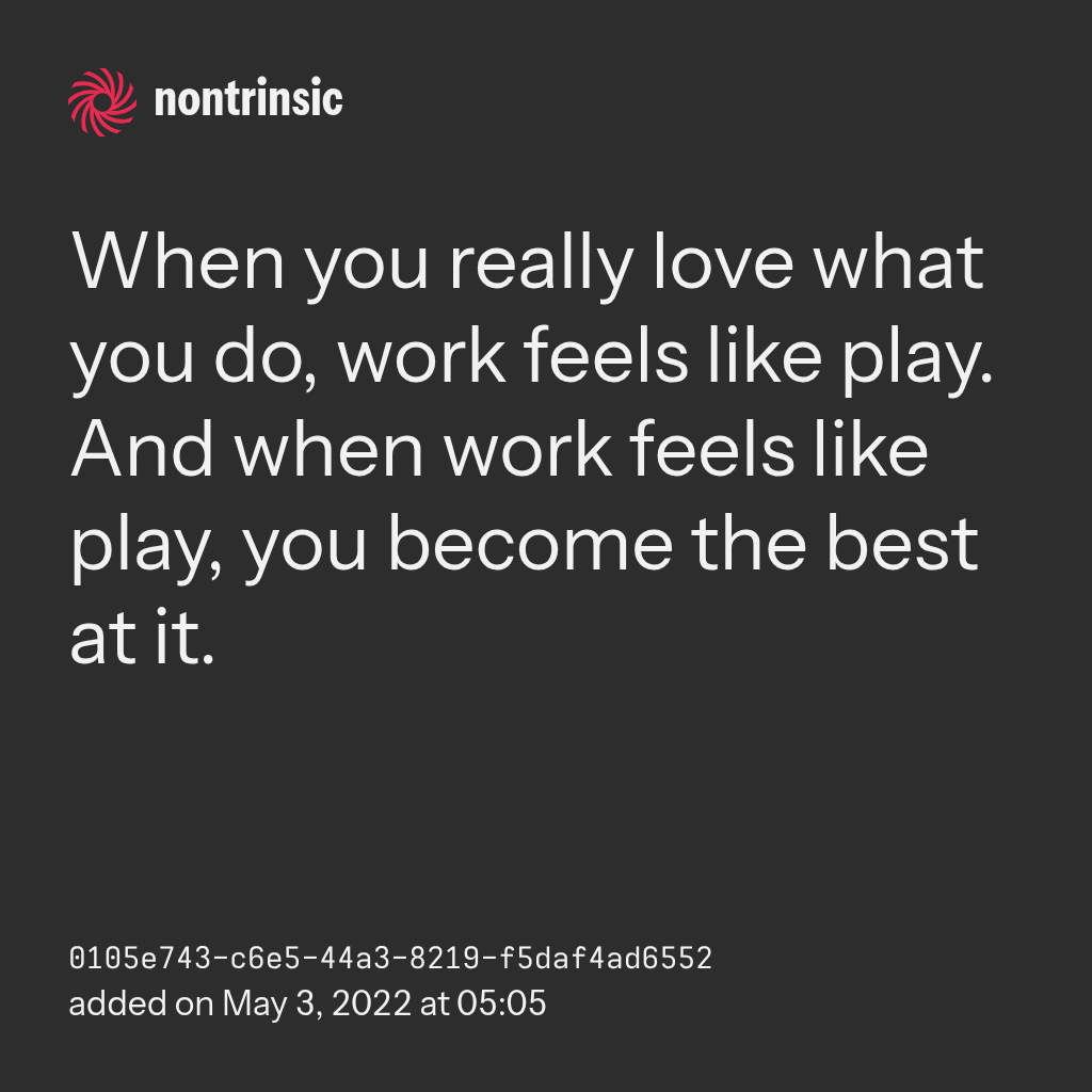 bagikanWhen you really love what you do, work feels like play. And when work feels like play, you become the best at it.