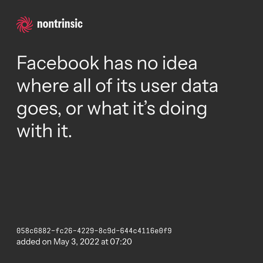 bagikanFacebook has no idea where all of its user data goes, or what it’s doing with it.
