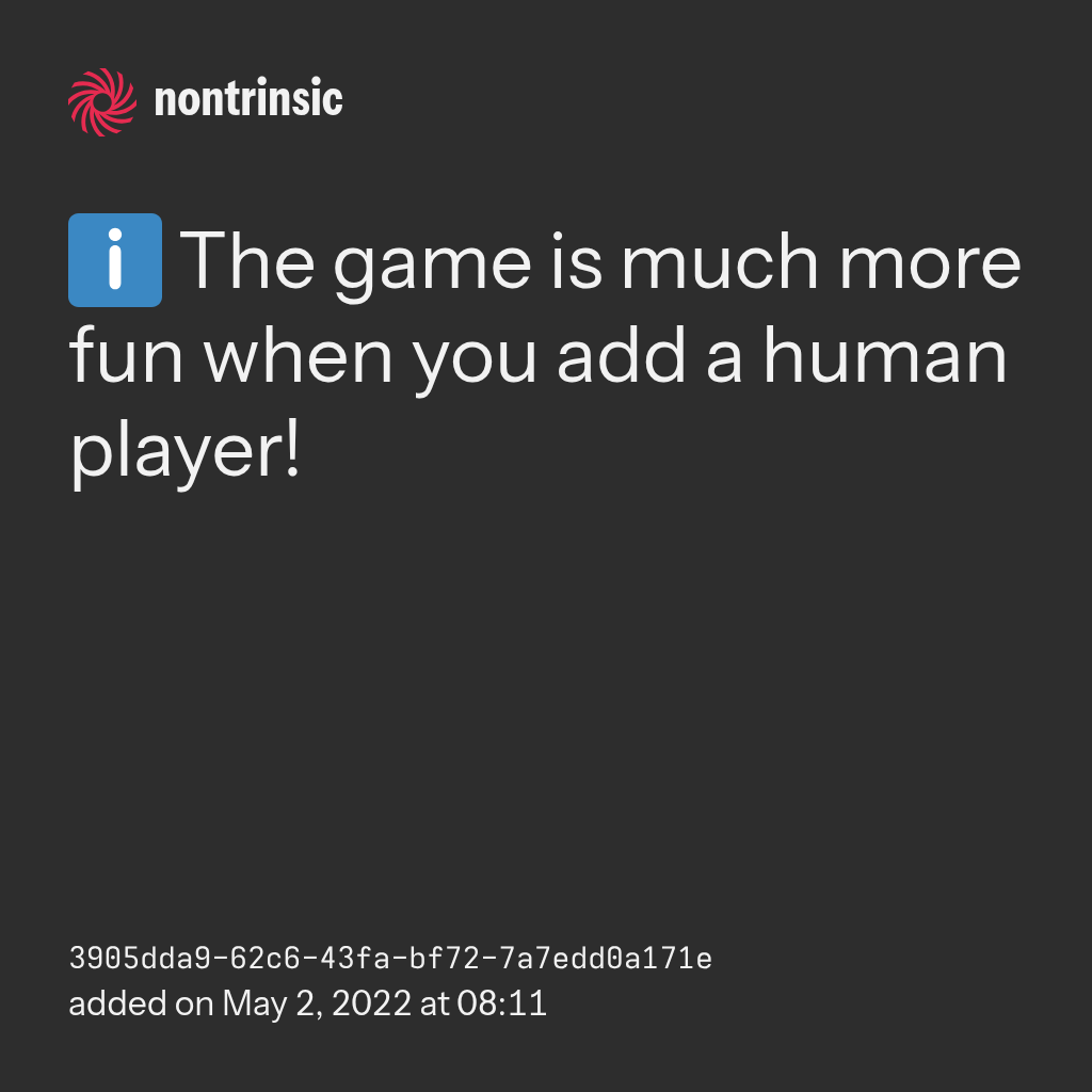 bagikanℹ️ The game is much more fun when you add a human player!