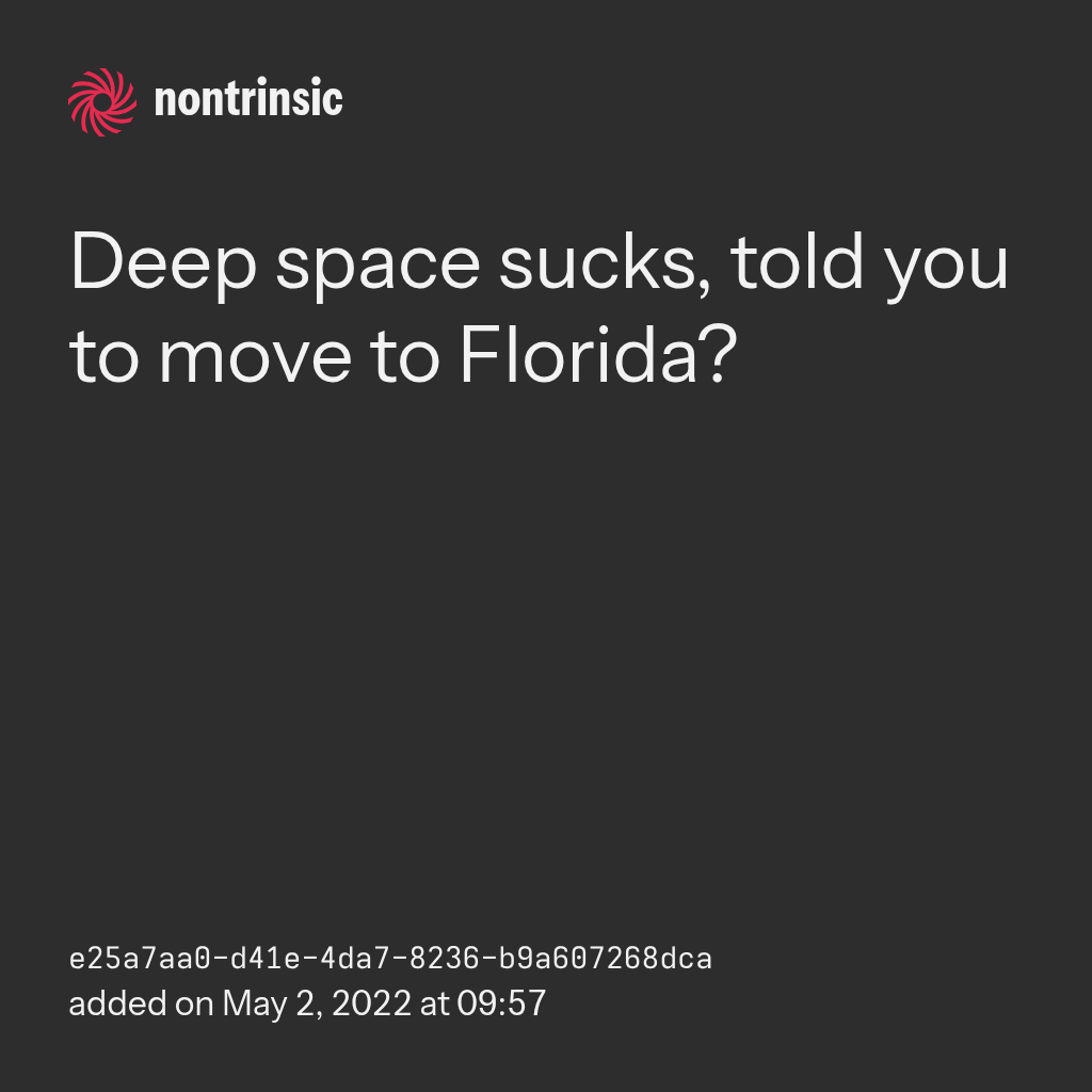 bagikanDeep space sucks, told you to move to Florida?