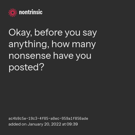 bagikanOkay, before you say anything, how many nonsense have you posted?