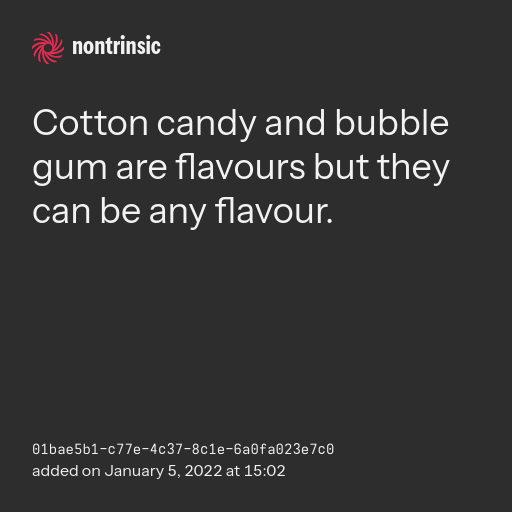 bagikanCotton candy and bubble gum are flavours but they can be any flavour.