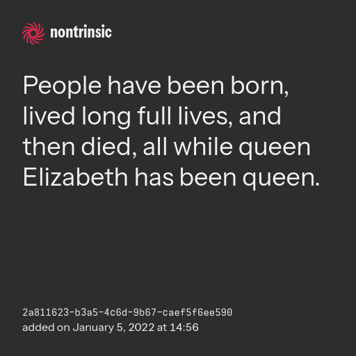 bagikanPeople have been born, lived long full lives, and then died, all while queen Elizabeth has been queen.