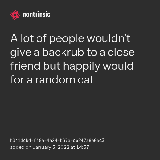 bagikanA lot of people wouldn’t give a backrub to a close friend but happily would for a random cat