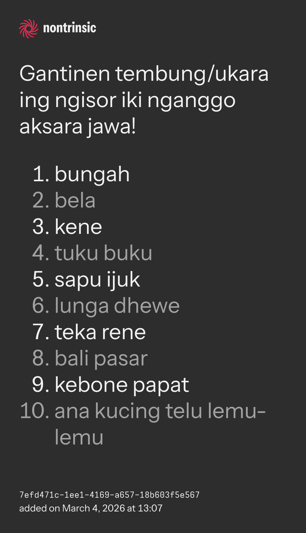 bagikanGantinen tembung/ukara ing ngisor iki nganggo aksara jawa!