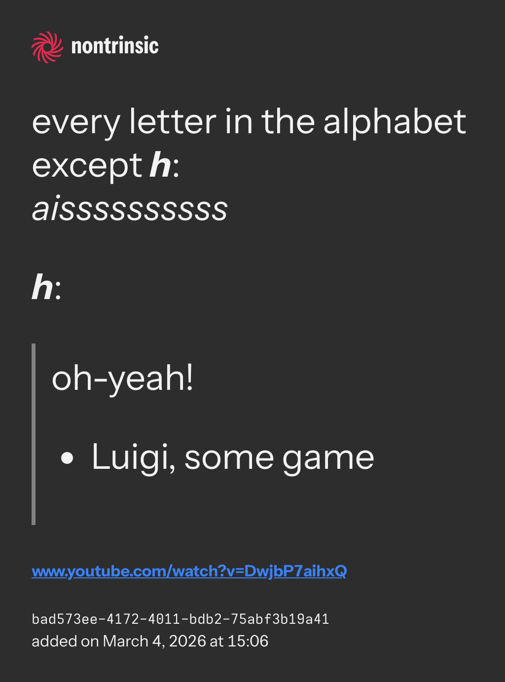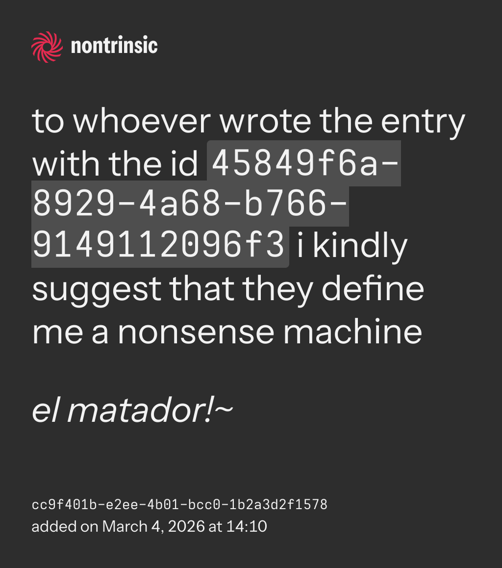 bagikanto whoever wrote the entry with the id 45849f6a-8929-4a68-b766-9149112096f3 i kindly suggest that they define me a nonsense machine
